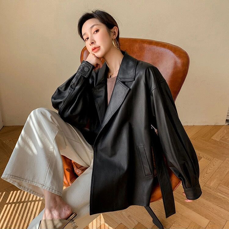 Be the first to review “All-match Loose Belt Small Leather Jacket”