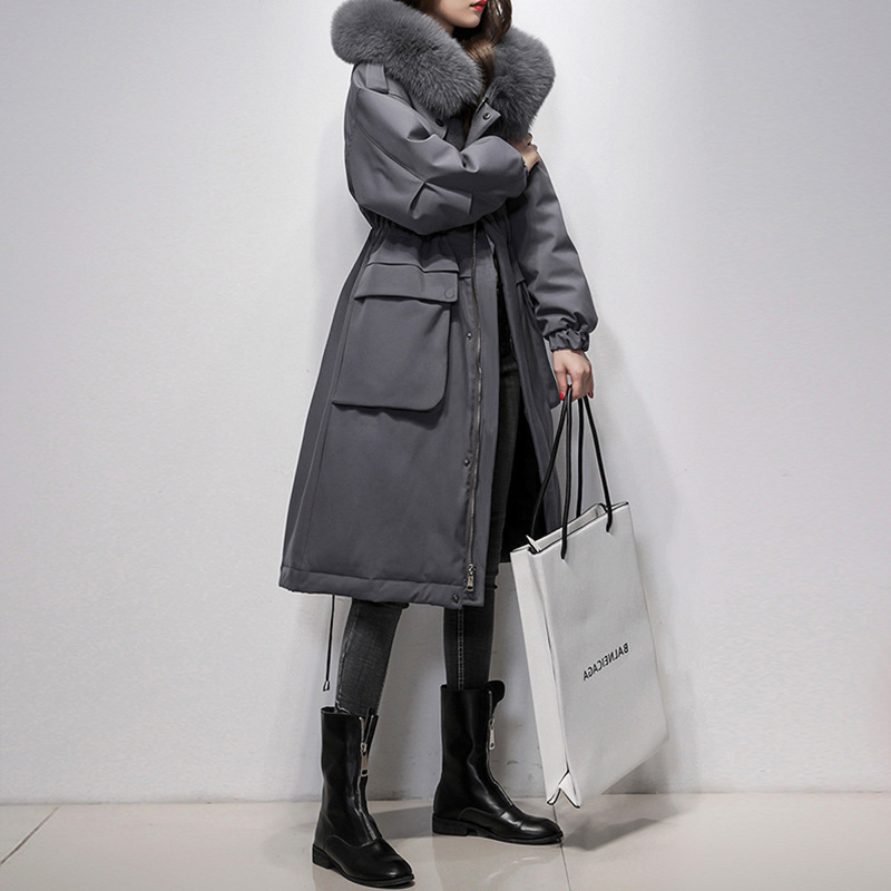 Color: Black (fox fur collar), dark gray (fox fur collar), caramel (fox fur collar), Beige (fox fur collar)