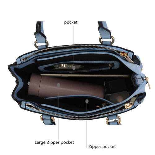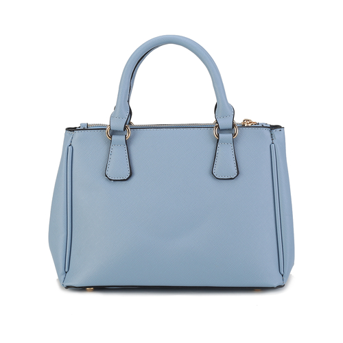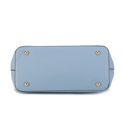 - A compact companion with enough room for everything, our structured Ruth Satchel is polished and cool at the same time. Crafted from Saffiano vegan leather and designed with gold-tone hardware, you will love this style. Made with three compartments, this is a purposeful and practical design that doesn’t compromise on style. Unzips the top zipper closure compartments to reveal a fully lined interior. The middle compartment features a slip pocket and a wall zip pocket. Attach the adjustable strap to wear it crossbody. It comes with a decorative keychain with our emblem on it. This style has a flat base and feet for stability. The Ruth Satchel bag comes with a matching wallet.