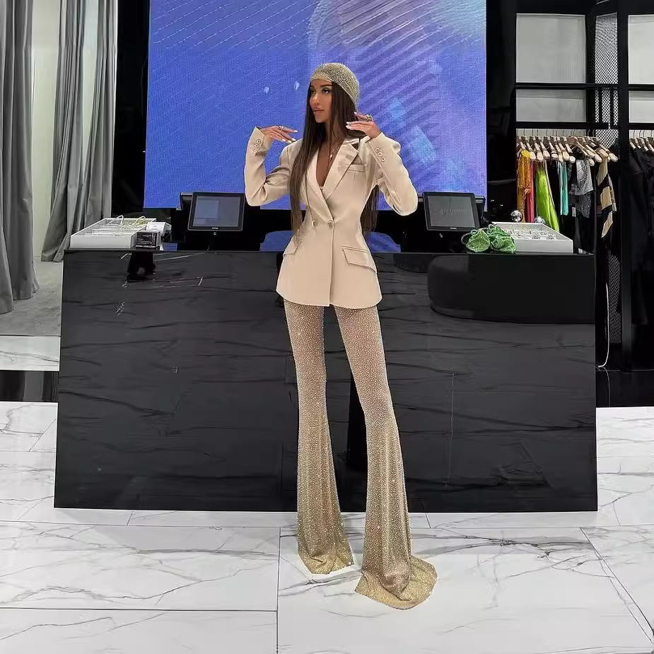Be the first to review “V-neck Suit Jacket Hot Drilling Heavy Industry Trousers Affordable Luxury”