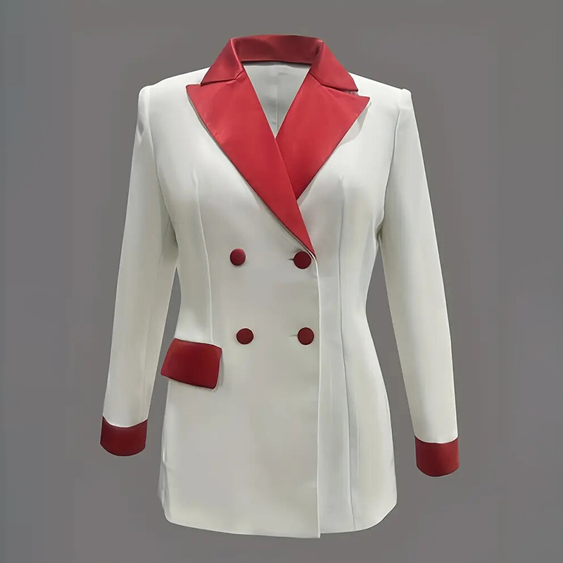 Elevate your professional wardrobe with our Women’s Classic Notch Lapel Blazer, where traditional tailoring meets contemporary design. This sophisticated jacket features a  sharp notch lapel, elegant double-breasted button closure, and a strategically tailored waist  that creates a powerful yet feminine silhouette. The  contrasting color-block panels  add modern flair to this timeless piece, making it perfect for elevating both office attire and formal ensembles during spring and autumn seasons.